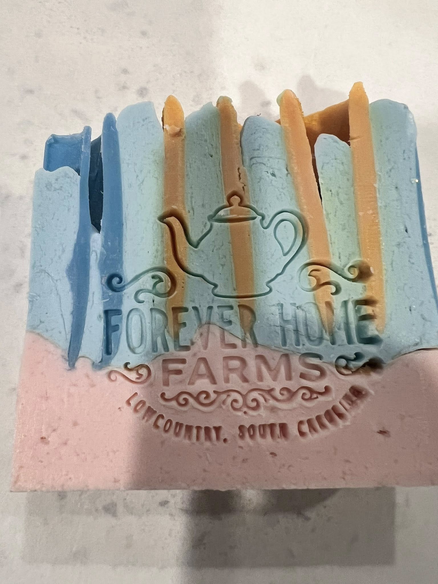 Ingredients: Purified water, saponified oils of organic olive, organic coconut, palm, shea butter, coconut milk, mica, oxides